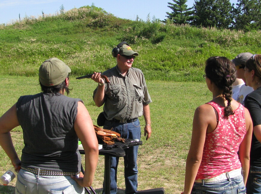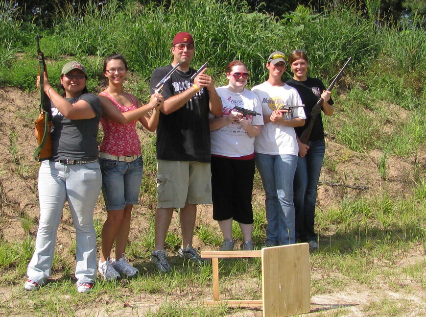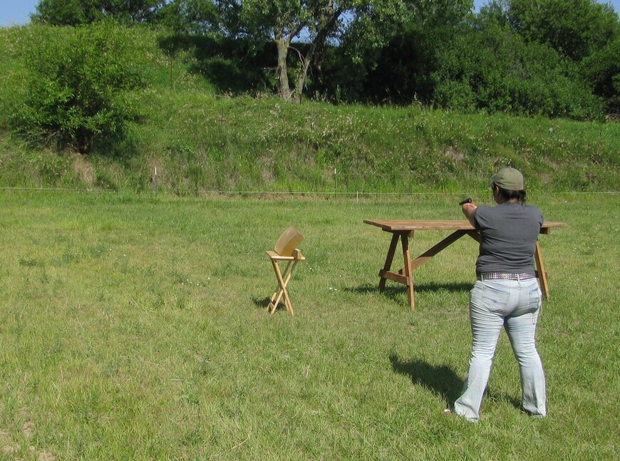 Students in a seminar on external ballistics sweated through a particularly warm morning on the shooting range at the Izaak Walton shooting facility. They each shot several different weapons through a chronograph to measure velocity and into ballistic gel to look at trajectory. A few rounds did hit the chronograph, rather than go through it, and the table holding the ballistic gel also ended up the worse for wear. But the students were able to take the data they gathered in the morning and analyze it in the much cooler classroom in the afternoon.