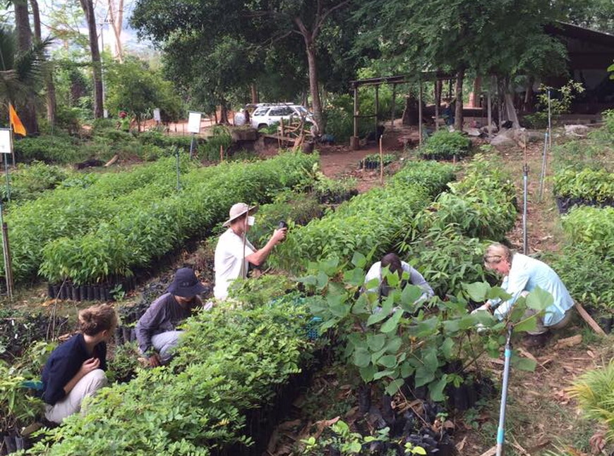 In Chiang Mai, located in northern Thailand, the group worked with the Forest Research and Restoration Unit (FORRU), a group of ecologists and university students that conducts research and develops effective methods on forest restoration and conservation. The group learned about and used a variety of forest restoration techniques, from clearing weeds along mountain ranges with machetes to measuring and plotting deforested areas with garden hoes, to planting nearly 250 trees and relocating 1,100 tree saplings.