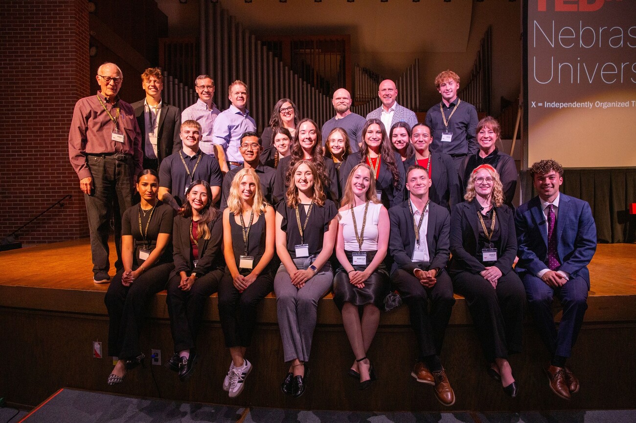 Chance Hergott, a 2025 graduate, emceed the symposium’s capstone event: a student-led effort, “TEDxNWU: A Community of eXcellence,” which featured an evening of rapid talks by five alumni innovators.