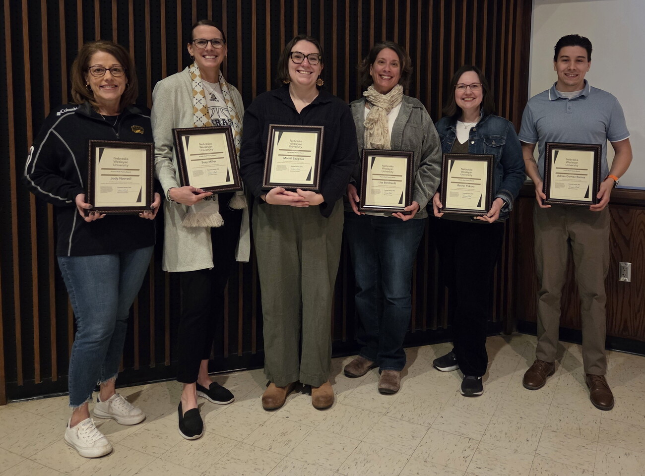 The Golden Service Award promotes Nebraska Wesleyan’s core values by recognizing and awarding staff and faculty working as a group and demonstrating cross-departmental collaborations, whose efforts and contributions as a group significantly exceed expectations in demonstrating or promoting one or more of these values: excellence, liberal arts, and personal attention to students, diversity, community, and stewardship.